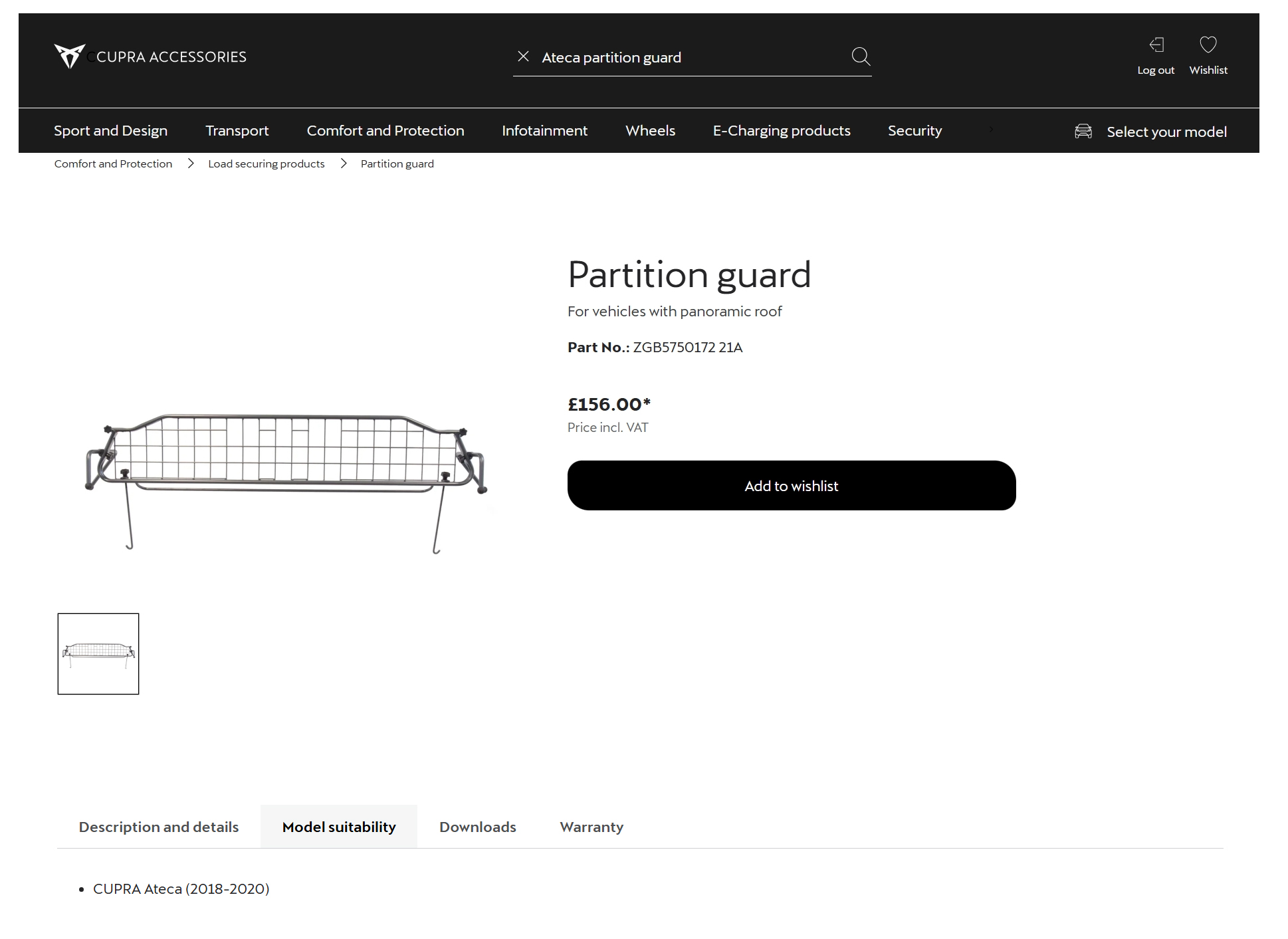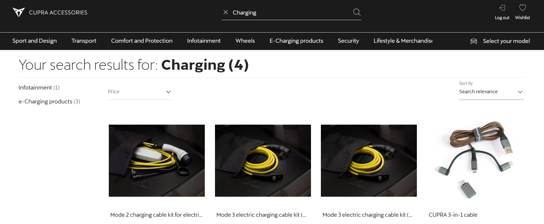 Tip: Apply the model filter before selecting a Sales Category to view only products suitable for that model.